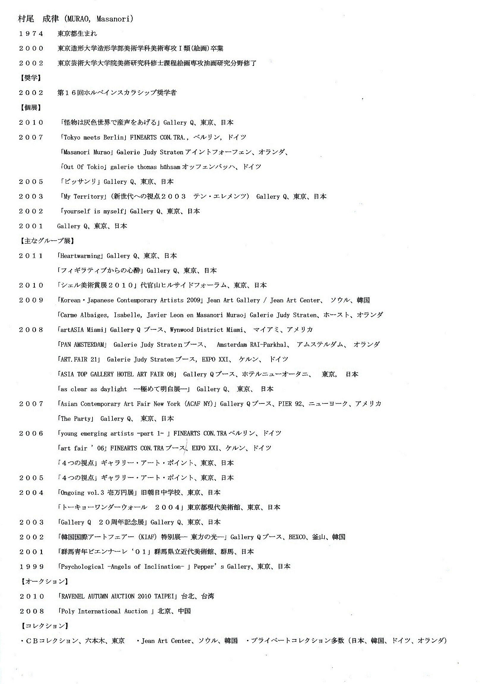 講師 (本科・予科担当) 村尾 成律 (むらお まさのり) MFA(美術学修士) 東京造形大学絵画科卒業 |