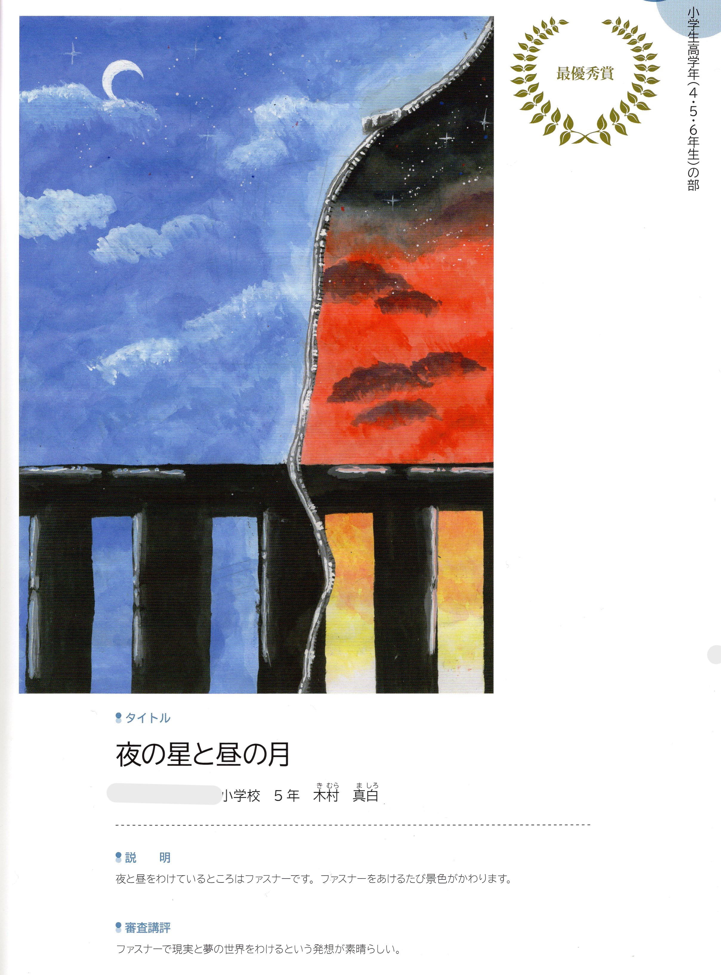 (金賞:絵画部門出品総数739名中1位、文部科学大臣賞:全部門出品総数73,719名中2位タイ)