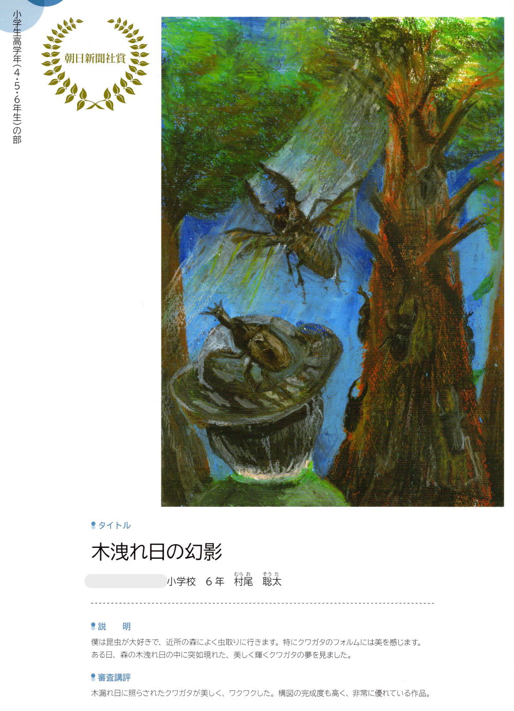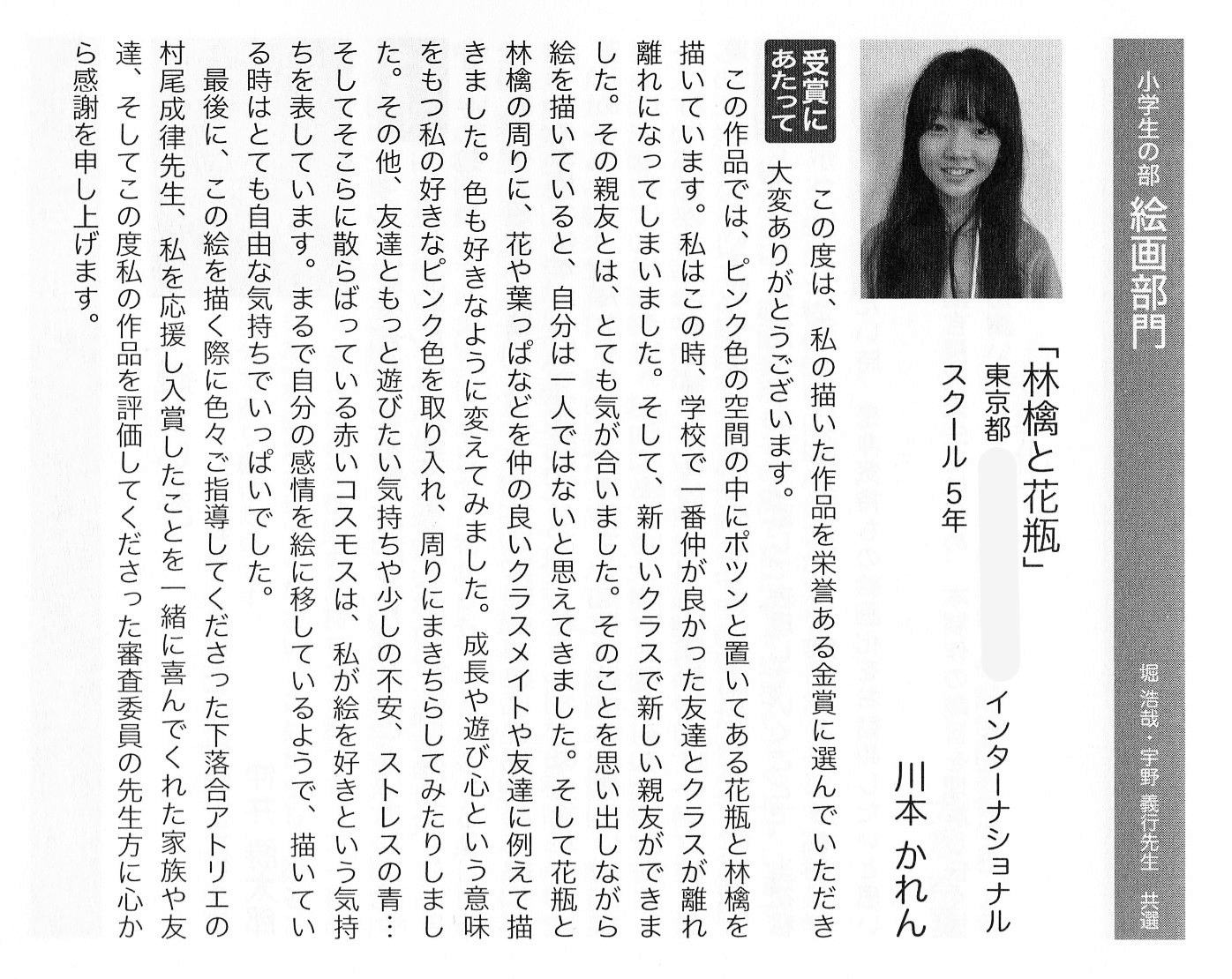 (本科午後クラス・小学6年生*受賞当時)