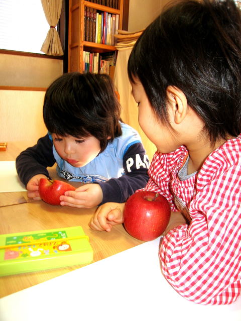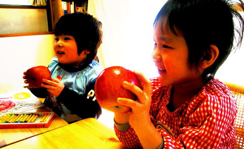 のびの〜びしてます(笑) ばんざーい!! リンゴって美しいんだね!