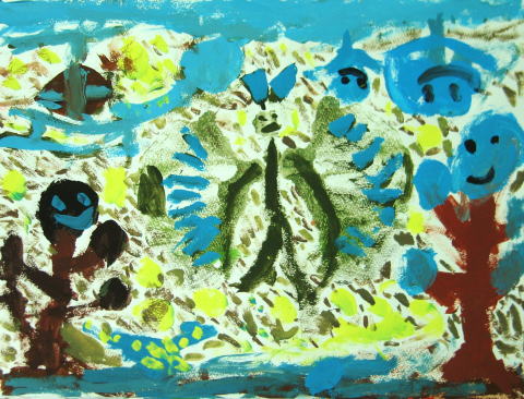 お絵描きはクレヨン、水彩、鉛筆などを使い、モチーフの見た目を再現するよりも感性を重視したイメージ作りを促します。
