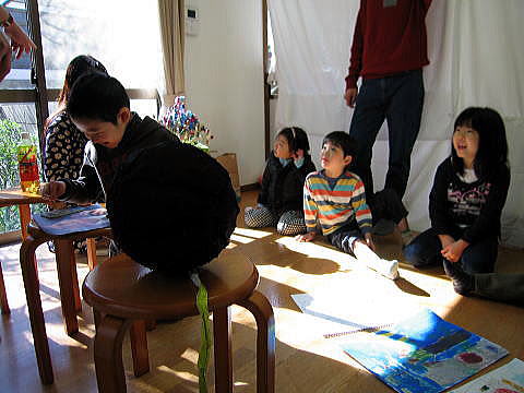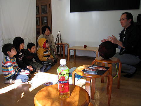 たまに大人達のクラスに出向いて作品を鑑賞させてもらいます。↑は作者から作品の解説を聞いているところです。