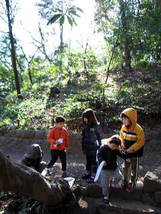 近所の「おとめ山」で自然に触れながら感性を育てます。 みんなARTに興味津々です!